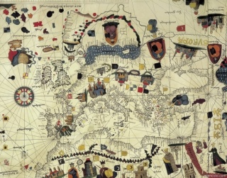 JUAN DE LA COSAEl mapa o carta naval de Juan de la Cosa (1500). Museo Naval de Madrid (España). Nacimiento h. 1450 o 1460Santa María del PuertoCantabriareino de Castilla(actual Santoña España) ...