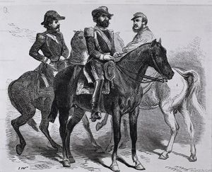 GUERRA DE LA TRIPLE ALIANZA Encuentro de los generales Venancio Flores y Bartolomé Mitre con el mariscal Francisco Solano López, en 1866, durante la Guerra de la Triple Alianza. Grabado. Fecha ...