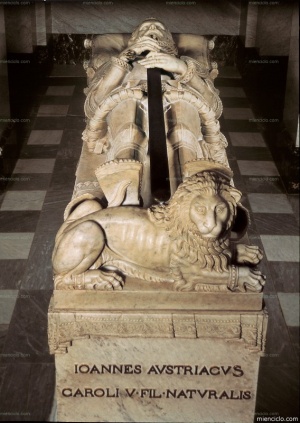 Juan de AustriaGobernador de los Países Bajos españolesy comandante de la Santa Liga de EstadosSepulcro de Juan de Austria en el Panteón de los Infantes del Real Monasterio de San Lorenzo de El ...