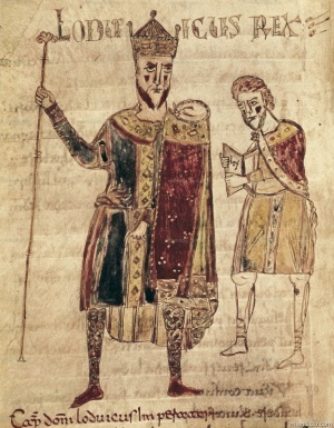 Luis I el _Piadoso_(Ludovico Pío o _Louis le Pieux_) _Rey de los francos y Emperador de Occidente_ Ludovico Pío. Ilustración perteneciente al manuscrito 4 del _Codex Legum Longobardorum._ Arte ...