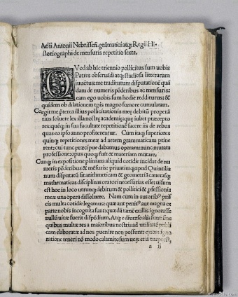 Elio Antonio de Nebrija (1441-1522), humanista y gramático español, autor de _Gramática castellana_, primera gramática de una lengua romance. Página interior de su obra _Introductiones in Latinam ...