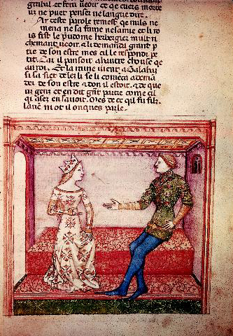 LANCELOT DU LAC, caballero de la Tabla Redonda, cuyo amor por Ginebra, esposa del rey Arturo, le hizo indigno de conquistar el Grial. Miniatura: LANCELOT DU ...