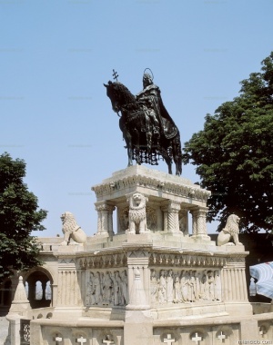 Esteban I de HungríaRey de HungríaMonumento a Esteban I el Santo, primer rey de Hungría. Escultura en bronce con el rey a caballo y dispuesto sobre un bastión de piedra con relieves y esculturas. ...
