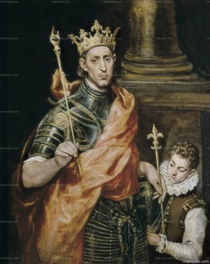 LUIS IX _Rey de Francia_ _San LUIS DE FRANCIA y un paje _. Óleo sobre lienzo (h. 1585-1590) de El Greco. Museo del Louvre, París. Retrato del monarca con armadura y corona. REINADO 8 de ...