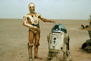 La guerra de las galaxias- Episodio IV- Una nueva esperanza1976 Escena con los robots R2D2 y C3PO(Star wars) Trilogía cinematográfica ideada por el realizador y productor estadounidense George Lucas ...