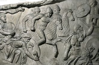 Pueblo de origen iranio que emigró desde Asia central hacia los montes Urales en los siglos VI-IV a.C. y se estableció en el sur de la Rusia europea y el oriente de los Balcanes.Columna Trajana (año ...